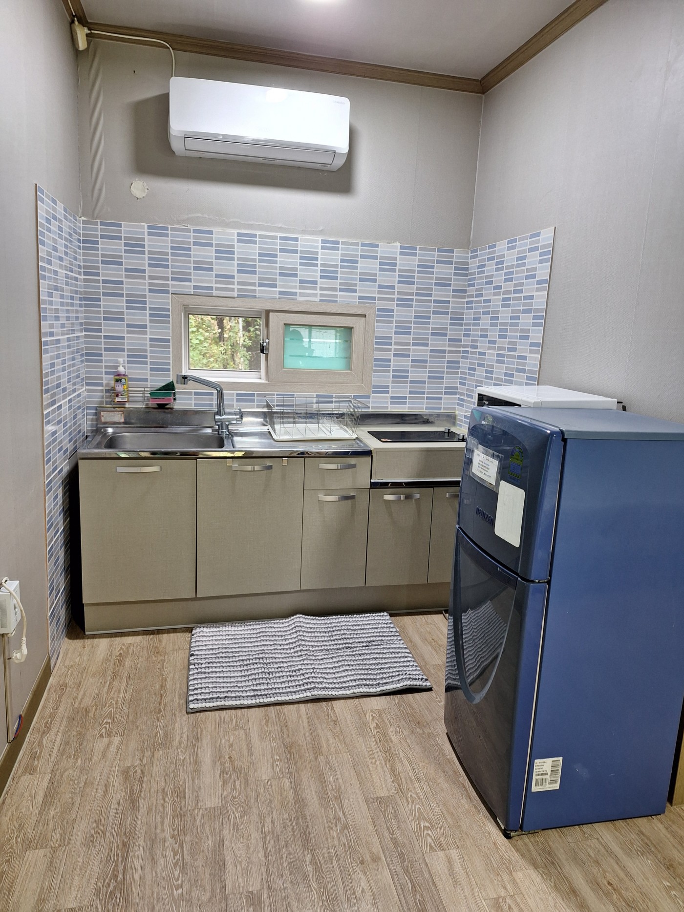 목욕탕(화장실), 싱크대, 인덕션, 전자레인지, 식기, 전기밥솥, 냉장고, 에어컨, 선풍기, TV, 이불 등