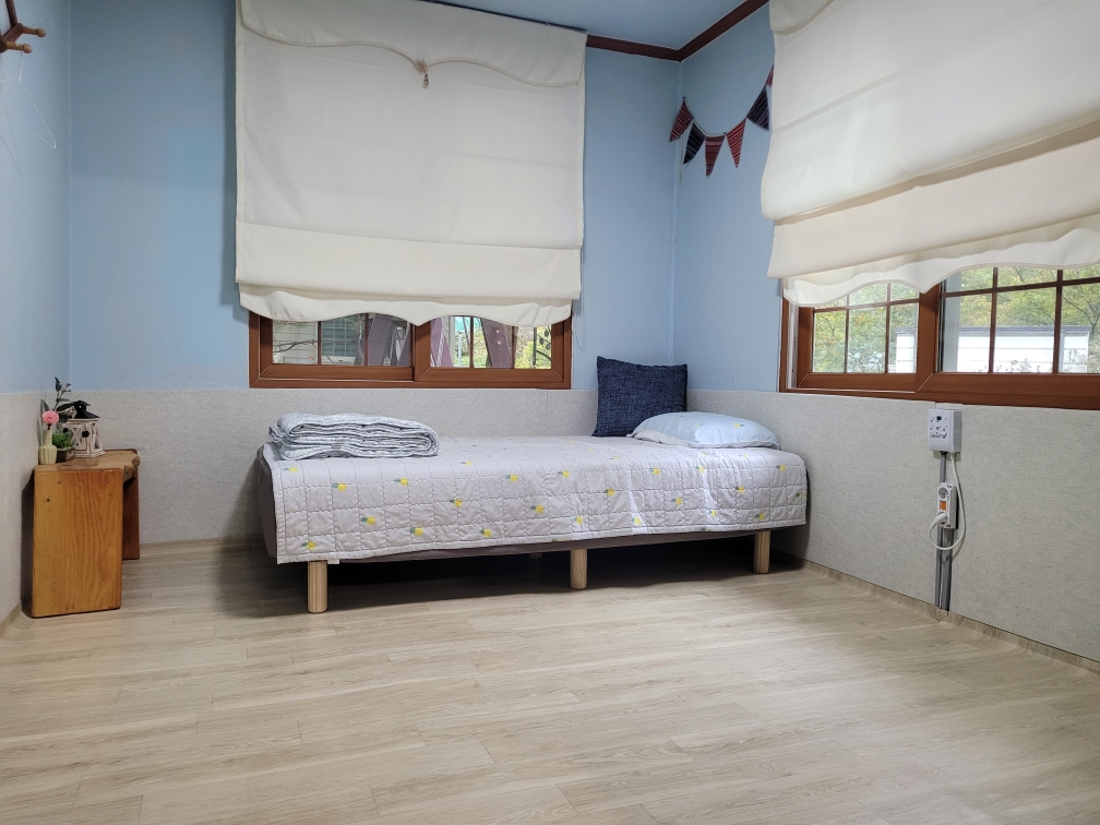 가족 2~3팀이 함께 편안하게 이용할 수 있도록 내부 시설을 꾸몄으며, 밖에는 전용 원두막도 갖춰져 있어서 오붓하게 바비큐 파티를 즐길 수 있습니다.