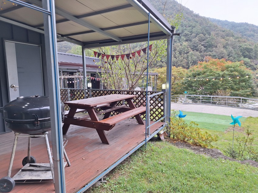 가족 1팀이 함께 편안하게 이용할 수 있도록 내부 시설을 갖췄으며, 밖에는 전용 원두막도 있어서 오붓하게 바비큐 파티를 즐길 수 있습니다.