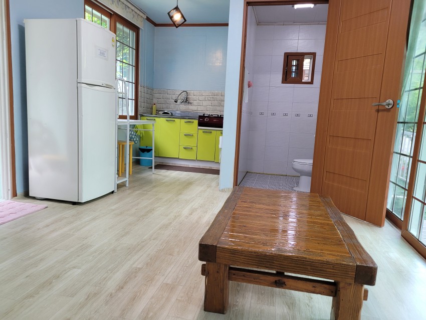 매화실, 난초실 펜션의 객실 구조입니다.(방 1개, 거실 겸 주방, 목욕탕)
